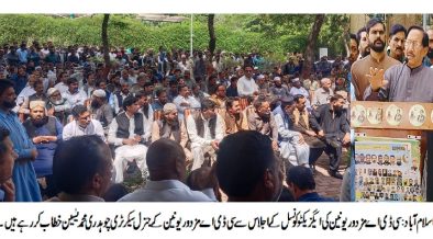 اسلام آباد (اردو ٹائمز) اگر ملازمین کے مسائل کو پندرہ دن کے اندرحل نہ کیا گیا تو مزدور یونین آئندہ کے لائحہ عمل کا اعلان کرے گی۔ چوہدری محمدیٰسین تمام ملازمین مزدور یونین کے قائد چوہدری محمدیٰسین پر اپنے مکمل اعتمادکا اظہارکرتے ہیں۔ راجہ شاکر زمان کیانی سی ڈی اے مزدور یونین کی ایگزیکٹوکونسل کا […]