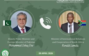 اسلام آباد (اردو ٹائمز) نائب وزیرِ اعظم،وزیرِ خارجہ سینیٹر محمد اسحاق ڈار نے آج جنوبی افریقہ کے وزیر برائے بین الاقوامی تعلقات و تعاون، رونالڈ لامولا کے ساتھ ٹیلیفون پر گفتگو کی۔دونوں رہنماں نے مشرقِ وسطی اور وسیع تر خطے میں ہونے والی تازہ پیش رفت پر تبادلہ خیال کیا۔ وزیر لامولا نے عارضی جنگ […]
