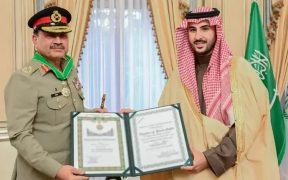 اسلام آباد (اردو ٹائمز) سعودی عرب کے وزیرِ دفاع شہزادہ خالد بن سلمان بن عبدالعزیز نے چیف آف ڈیفنس فورسز اور چیف آف آرمی اسٹاف فیلڈ مارشل عاصم منیر کو پاک سعودی تعلقات کو فروغ دینے کی کوششوں پر سعودی عرب کا اعلیٰ اعزاز کنگ عبدالعیزیز میڈل آف ایکسیلنٹ کلاس سے نوازا ہے۔ رپورٹ کے […]