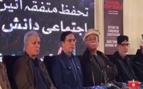 اسلام آباد (اردو ٹائمز)(آئی پی ایس )تحریک تحفظ آئین پاکستان کی قومی کانفرنس میں سیاسی رہنماں، وکلا، صحافیوں نے پی ٹی آئی کو مفاہمت کے بجائے مزاحمت کا راستہ اختیار کرنے اور اس کا ساتھ دینے پر اتفاق کیا ہے۔ اپوزیشن تحریک تحفظ آئین پاکستان کے تحت قومی کانفرنس کا انعقاد ہوا جس میں سیاسی […]