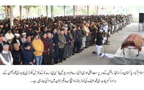 اسلام آباد (اردو ٹائمز) پاکستان ورکرزفیڈریشن کے سرپرست اعلیٰ اور سی ڈی اے مزدور یونین(سی بی اے) کے جنرل سیکرٹری چوہدری محمد یٰسین کے برادراکبرچوہدری محمد حنیف سابق پروڈکشن منیجر ٹاپس مری بروری طویل علالت کے بعد کیپیٹل ہسپتال میں انتقال کر گئے جن کی نمازجنازہ ایچ ایٹ قبرستان میں اداکر دی گئی،نمازجنازہ میں پاکستان […]