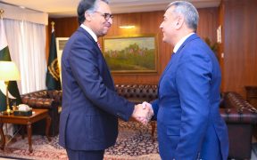 Amb of #Azerbaijan @k_farhadov called on FM @JalilJilani. Entire spectrum of bilateral relations was discussed. They noted the positive trajectory of 🇵🇰🇦🇿 relations & reiterated resolve to further cement relations with focus on trade, connectivity & ppl to ppl ties.