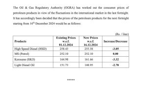 پیٹرول کی قیمت برقرار،ہائی اسپیڈ ڈیزل سستا۔