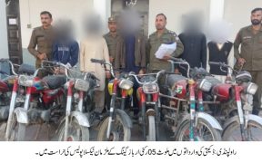 راولپنڈی ایس ایچ او تھانہ ٹیکسلا رانا کاشف کی زیرنگرانی پولیس ٹیم کی کاروائی، ڈکیتی کی وارداتوں میں ملوث 05 رکنی ارباز گینگ گرفتار،ملزمان سے چھینے گئے07 موٹر سائیکل، 02 موبائل فون، رقم 38 ہزار روپے اور اسلحہ برآمد،ملزمان بائکیا بک کرواتے اورگن پوائنٹ پر شہریوں سے موٹرسائیکل و نقدی چھین لیتے تھے۔تفصیلات کے مطابق […]