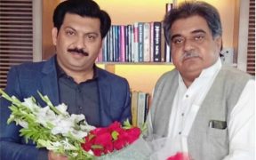 پیرسیدسہیل بخاری چئیرمین ایشین ایوارڈز کمیٹی چوہدری عبدالروف چئیرمین فئیرگروپ کو سالگرہ کی مبارکباد دیتے ہوئے گلدستہ پیش کر رہے ہیں –