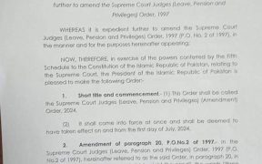 وفاقی حکومت نے سپریم کورٹ کے ججز کی تنخواہوں اور ہاؤس رینٹ الاؤنس میں اضاضہ کا نوٹیفکیشن جاری ہاوس رینٹ 68 ہزار سے بڑھا کر 3 لاکھ 50 ہزار روپے کردیا گیا جوڈیشل الاونس 3 لاکھ 42 ہزار سے بڑھا کر 10 لاکھ 90 ہزار کردیا گیا قائم مقام صدر کی منظوری کے بعد وزارت […]
