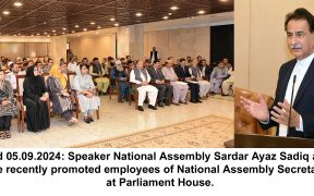 Islamabad, TheSpeaker National Assembly Sardar Ayaz Sadiq has extended warm felicitations to recently promoted employees of the National Assembly Secretariat. He said that strict observance of laws and regulations has been observed while promoting employees. He also assured that all employees are equal as per rules and regulations. While addressing recently promoted employees of […]
