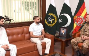ISPR Rawalpindi, 4 May 2024: Boxing Legend Amir Khan and Martial Arts Champion Shahzaib Rind, met General Syed Asim Munir, NI (M), Chief of Army Staff (COAS) at General Headquarters. COAS appreciated both for their phenomenal achievements in the field of sports and expressed full confidence in Pakistan’s youth for their outstanding potential.