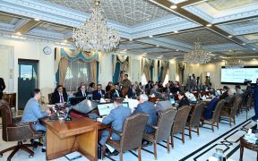 Islamabad: Caretaker Prime Minister Anwaar-ul-Haq Kakar chairs a meeting of the Caretaker Federal Cabinet on 15 February 2024.