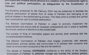 The resolution to suspend the February 8 general elections in the House was passed by majority vote
