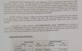 نیشنل پولیس فاؤنڈیشن کے زیر اہتمام پولیس ملازمین کیلئے نئی ہاؤسنگ سکیم لانچ کی جا رہی ہے۔ پنجاب پولیس کے ملازمین اس ہاؤسنگ سکیم سے فائدہ اٹھانے کیلئے نیشنل پولیس فاونڈیشن کی ویب سائٹ کے ذریعہ آن لائن ممبر شپ فارم فل کر کے اپلائی کرسکتے ہیں اور اسکی فیس موبائل بینکنگ، جاز کیش یا […]