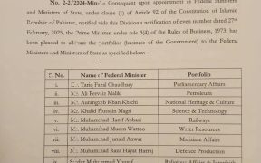 (ملک عمران خان اعوان) اسلام آباد (اردو ٹائمز) ڈاکٹر طارق فضل چودھری کو وفاقی وزیر برائے پارلیمانی افئیرز مقرر کردیا گیا۔ علی پرویز ملک کو وفاقی وزیر برائے پٹرولیم مقرر کردیا گیا۔ اورنگزیب خان کھچی کو وفاقی وزیر برائے قومی ورثہ مقرر کردیا گیا۔ خالد حسین مگسی کو وفاقی وزیر برائے سائنس اینڈ ٹیکنالوجی مقرر […]