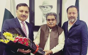 لاھور (اردو ٹائمز) پیرسیدسہیل بخاری چئیرمین ایشین ایوارڈز کمیٹی سید توقیر حیدر کاظمی ایگزیکٹو ڈائریکٹر لاھور آرٹس کونسل ( الحمراء ) کو ایک ملاقات میں گلدستہ پیش کر رہے ہیں ساتھ سید خرم نویل ڈپٹی ڈائریکٹر ایڈمن الحمراء ہیں