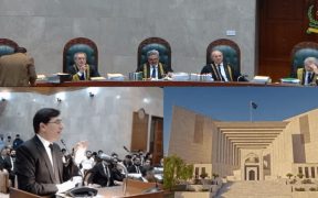 سپریم کورٹ میں چیف جسٹس قاضی فائز عیسیٰ کی سربراہی میں فل کورٹ، مخصوص نشستوں پر کیس کی سماعت کر رہا ہے۔ کیس کی سماعت براہ راست دکھائی جارہی ہے۔ الیکشن کمیشن کے وکیل سکندر بشیر نے دلائل کا آغاز کرتے ہوئے کہا کہ میں 30 منٹ میں دلائل ختم کردوں گا اور صرف 4 […]