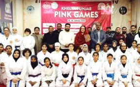راولپنڈی (اردو ٹائمز) کھیلتا پنجاب پنک گیمز کیلئے راولپنڈی ڈویژن کراٹے ٹرائلز میں شریک کھلاڑیوں کا مہمان خصوصی ایم پی اے تحسین فواد، ڈی او سپورٹس وحید احمد، ڈی ایس او شمس توحید عباسی و دیگر آفیشلز کے ہمراہ گروپ فوٹو۔