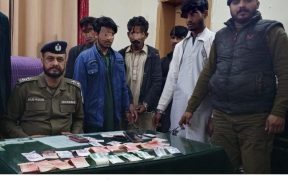 راولپنڈی ( )ائیرپورٹ پولیس کی کاروائی،تاش پر جواء کھیلنے والے 05 قمار باز گرفتار، داؤ پر لگی رقم 5100 روپے، 02 موبائل فون اور تاش برآمد۔تفصیلات کے مطابق ائیرپورٹ پولیس نے کاروائی کرتے ہوئے تاش پر جواء کھیلنے والے 05قمار بازوں کو گرفتار کر لیا،گرفتار ملزمان میں ہارون، معشام، حسنین، عدنان اوررمضان شامل ہیں،ملزمان سے […]