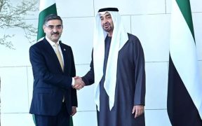 Abu Dhabi (daily digital post) The Caretaker Prime Minister Anwaar-ul-Haq Kakar meets the President of the United Arab Emirates His Highness Sheikh Mohamed bin Zayed Al Nahyan on 27 November 2023.