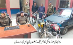 راولپنڈی( )ایس ایچ او تھانہ بنی ارشد محمود کی ہمراہ پولیس ٹیم اہم کارروائی، موٹرسائیکل و کار لفٹر صنم گینگ کا سرغنہ ساتھی سمیت گرفتار،05 مسروقہ موٹر سائیکل اور ایک مہران کار برآمد۔تفصیلات کے مطابق بنی پولیس نے کاروائی کرتے ہوئے موٹرسائیکل وکارلفٹر صنم گینگ کے سرغنہ کو ساتھی سمیت گرفتار کر لیا،ملزمان میں گینگ […]
