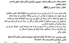 ایوان صدر میں جمع کروائے گئے خط میں اکرا کی جانب سے موقف اپنایا گیا ہے کہ پیمرا ترمیمی بل 2023 متفقہ طور پر منظوری کے بعد ایوان صدر بھجوایا جا چکا ہے ۔ اس بل میں ورکنگ جرنلسٹس اور میڈیا ورکرز کے حقوق کو تحفظ دیا گیا ہے ملک کی تاریخ میں پہلی مرتبہ […]