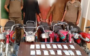 راولپنڈی(مظہر شاہ)ایس ایچ او تھانہ ریس کورس زوہیب شاہ کی ہمراہ پولیس ٹیم کاروائی، سٹریٹ کرائم اور بائیک لفٹنگ میں ملوث نبیل گینگ کا سرغنہ 02 ساتھیوں سمیت گرفتار،05 مسروقہ موٹر سائیکل، رقم 24 ہزار اور وارداتوں میں استعمال ہونے والا اسلحہ برآمد۔ تفصیلات کے مطابق ریس کورس پولیس نے کاروائی کرتے ہوئے سٹریٹ کرائم […]