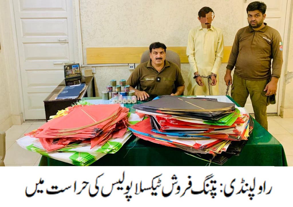 راولپنڈی(اردو ٹائمز ) ٹیکسلا پولیس کی کاروائی،پتنگ فروش گرفتار
