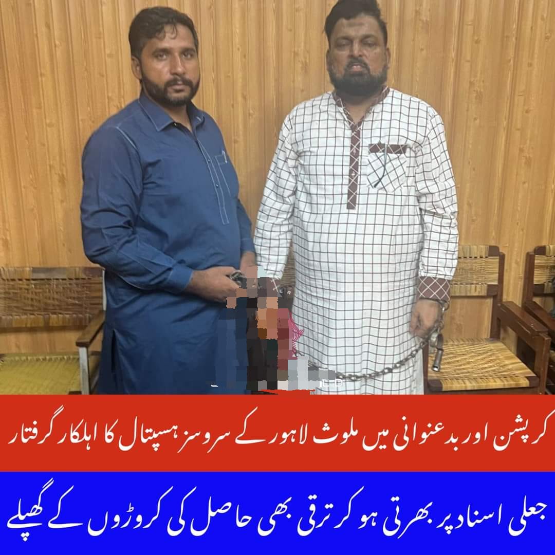 لاہور (اردو ٹائمز) سروسز اسپتال کے درجہ چہارم کے ملازم کو اینٹی کرپشن نے گرفتار کرلیا