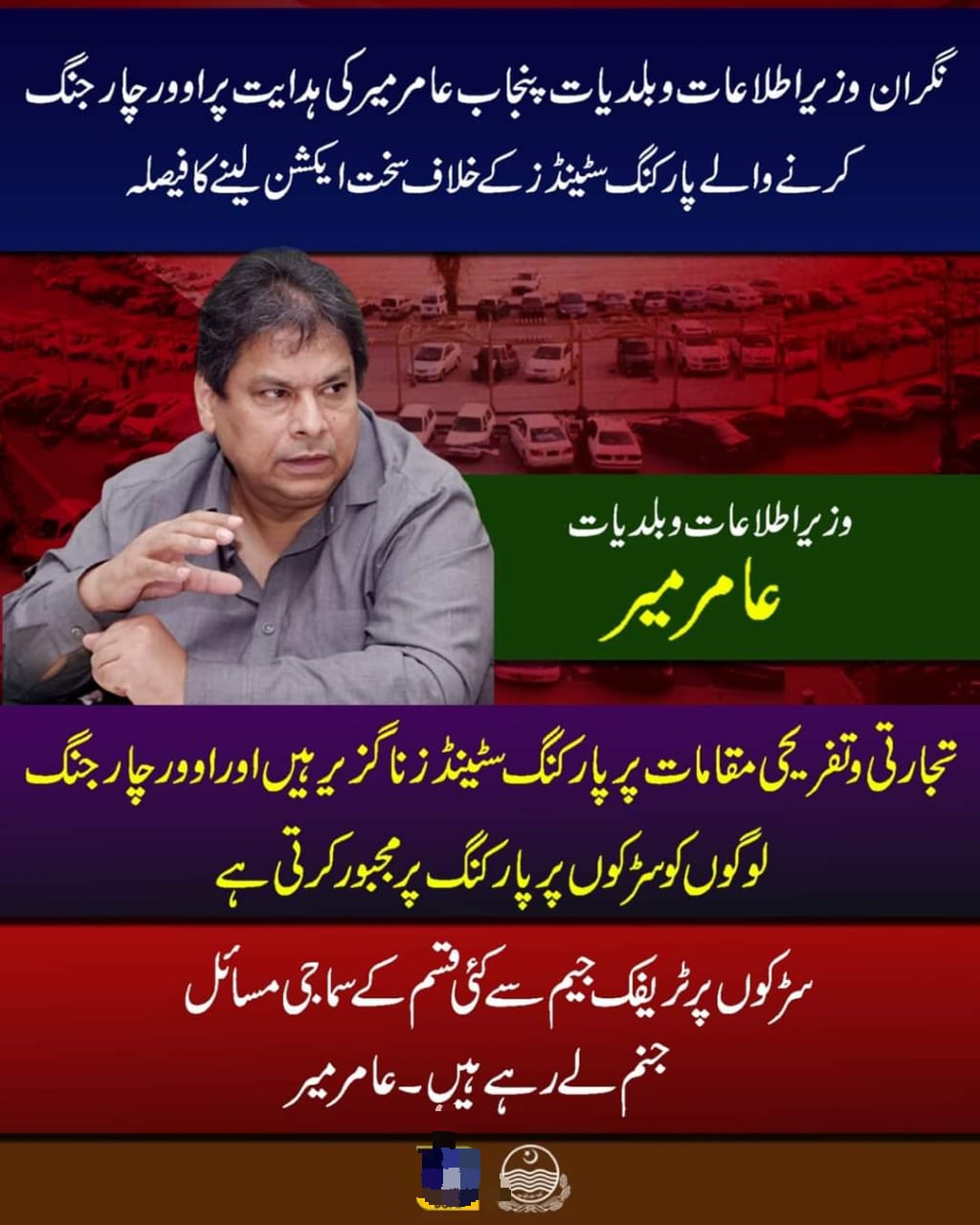 پاکستان تازہ ترین لاہور (اردوٹائمز) وزیر اطلاعات و بلدیات پنجاب عامر میر کی ہدایت پر اوور چارچنگ کرنے والے پارکنگ سٹینڈز کے خلاف سخت ایکشن لینے کا فیصلہ admin 2023-08-29 Share لاہور وزیر اطلاعات و بلدیات پنجاب عامر میر کی ہدایت پر اوور چارچنگ کرنے والے پارکنگ سٹینڈز کے خلاف سخت ایکشن لینے کا فیصلہ