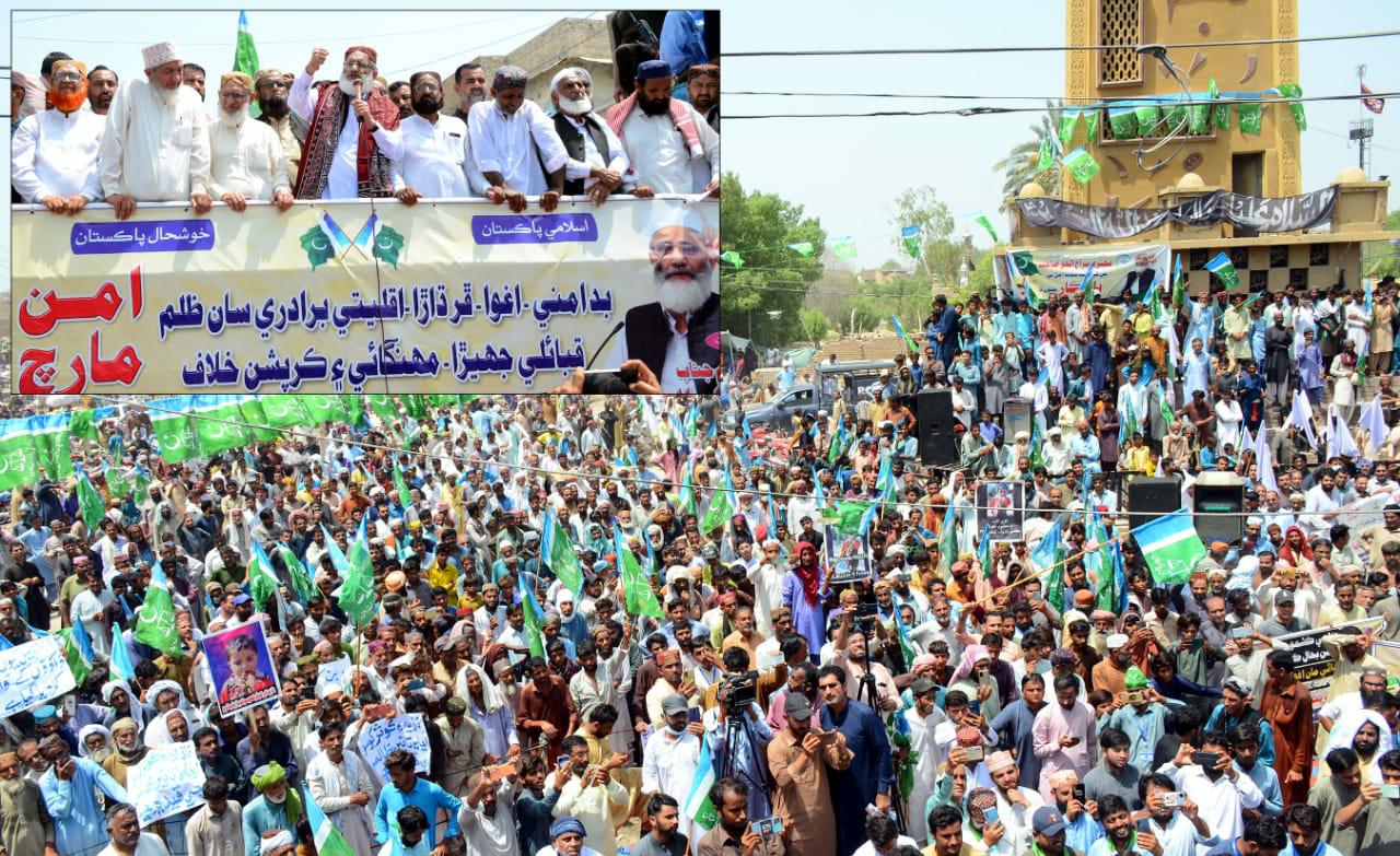 Addressing the sit-in planned in Kandhkot against the unrest and bandit regime, Amir Jamaat-e-Islami Sirajul Haque said that the People’s Party has continuously exploited the people of Sindh for the past 15 years. Honor is not safe, the people of Sindh, including Kashmore, were left at the mercy of robbers and robbers. Despite spending a heavy budget on security, keeping countless agencies, the people are victims of insecurity and the practically robber rule over Sindh. The police, civil administration and the rulers have joined hands with the bandits. If peace is not established in Sindh including Kashmore, the hands of the poor and oppressed people will be around the necks of the rulers. The kidnappers of children, women and youths should be hanged publicly at Ghanta Ghar Chowk. The PDM government has made the people slaves to the IMF, the electricity bills have become a death sentence for the people, on September 2, Jamaat-e-Islami will hold a nationwide general strike against the cruel electricity bills, and the people and businessmen will fully support it. To make it successful, we should play our role, cut off free electricity and give relief to the people, we will also knock on the doors of the courts for the rights of the people. It has to be done in the loan agreement, but we say that the properties of those who took the loan and spent on themselves should be auctioned. He expressed these views while addressing the historical dharna planned against unrest and bandit rule in Sindh including district Kashmore at Ghanta Ghar Chowk Kandhkot. Before that, under his leadership, a “Peace March” was also conducted from Kandhkot bypass to Ghanta Ghar Chowk, in which thousands of people including representatives of various political and social organizations of the city, businessmen, minority leaders, relatives of Bhang Ayuz abductees participated. Central Deputy Amir Maulana Asadullah Bhutto, Sindh Amir Muhammad Hussain Al-Jajhi, Provincial Deputy Amir Hafiz Nasrullah Chana, Deputy General Secretary Abdul Hafeez Bajrani, GI Youth Sindh President Imtiaz Palari, Minority Leader Mukky Suresh Kumar and District Amir Ghulam Mustafa Mirani also participated in the sit-in. addressed Sirajul Haque further said that today Sindh especially in Kashmore Kandhkot district is mourning in every house, MS Guddu Hospital Dr. Munir Naich, businessman Jagdish Kumar, Nazia Khoso and Masoom Kausar Khoso were abducted from Kashmore district for cannabis within a year. Despite the people’s strong protests, sit-ins, the government and the institutions have become silent spectators. There is a reign of oppression and terror everywhere.