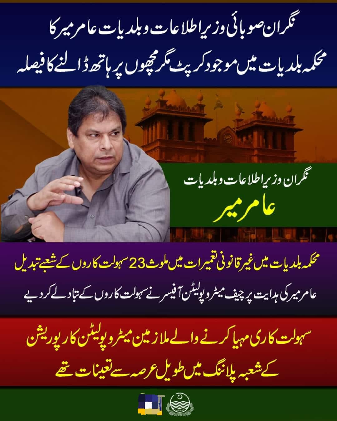 نگران صوبائی وزیر اطلاعات و بلدیات عامر میر کا محکمہ بلدیات میں موجود کرپٹ مگرمچھوں پر ہاتھ ڈالنے کا فیصلہ