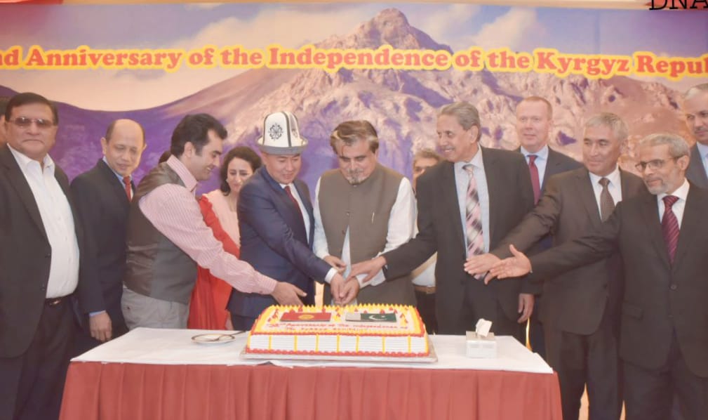 Syed Jamal Shah, Federal Minister for National Heritage and Culture was the chief guest of the event who also cut the cake of the 32nd anniversary of the Independence of Kyrgyz Republic with Ulanbek Totuiaev, Ambassador of Kyrgyzstan alongwith, Dean of Diplomatic Corps, Ambassadors of Tajikistan, Yemen, Malaysia, Vietnam and others.