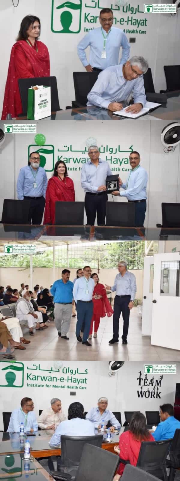 Sindh Caretaker Health Minister, Dr. Saad Khalid Niaz, visited the Karwan-e-Hayat hospital today, in Keamari, to appreciate the dedicated work being done by the Karwan team and to also understand the scope of operations within the mental health space. While he expressed satisfaction with the efforts to promote mental health, this visit was crucial as he was able to witness the operations firsthand – the patient visits at the OPD, rehabilitation services and In-Patient department. It also gave him more insights in further understanding the work that needed to be done for the underprivileged members of our community, especially those suffering from psychiatric ailments.