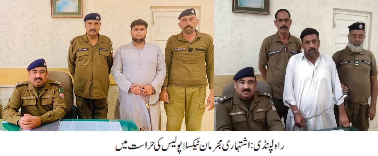 ،مختلف مقدمات میں مطلوب 02اشتہاری مجرمان گرفتار۔تفصیلا ت کے مطابق ٹیکسلا پولیس نے کاروائی کرتے ہوئے قتل کے مقدمہ میں مطلوب مجرم اشتہاری عاطف کو گرفتار کر لیا، اشتہاری مجرم عاطف نے اپنے ساتھیوں کے ساتھ مل کر باسط کو قتل کیا تھا، اسی واقعہ میں دوسرے فریق کے ملزمان نے نزاکت کو فائرنگ کرکے قتل جبکہ عاطف کو زخمی کیا تھا،ایک اور کاروائی کرتے ہوئے چیک ڈس آنر کے مقدمہ میں مطلوب اشتہاری مجرم انس کو گرفتار کر لیا،مجرم اشتہاری انس رواں سال چیک ڈس آنر کے مقدمہ میں مطلوب تھا،ایس پی پوٹھوہار محمد وقاص خان کا کہنا تھا کہ اشتہاری مجرمان کو ٹھوس شواہد کے ساتھ چالان کیا جائے گا،ملزمان کو قرار واقعی سزادلوانے کے لیے تمام قانونی تقاضے پورے کیے جائیں گے۔