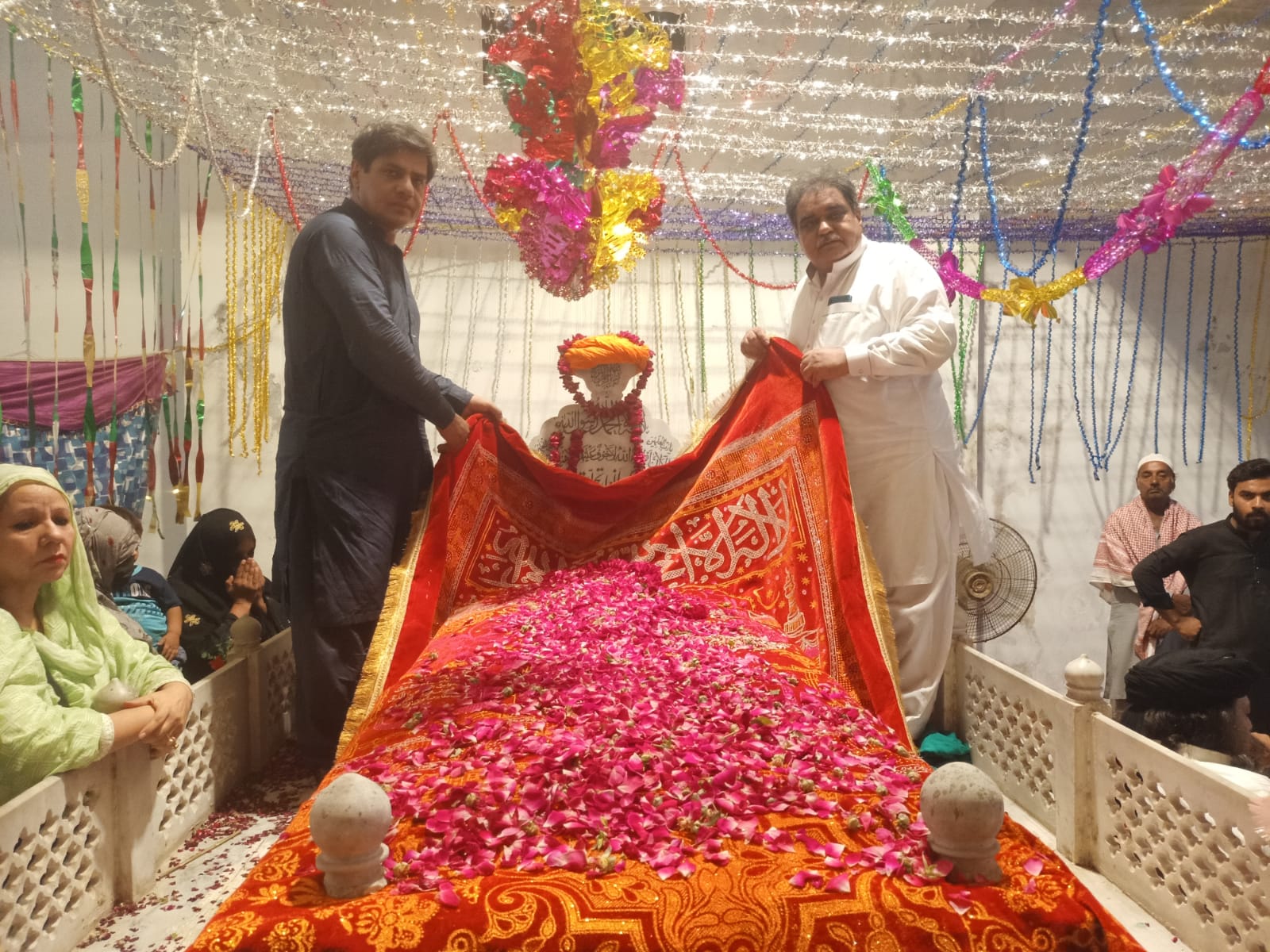 اس موقع پر مزاراقدس پر سجادگان دربار شریف ڈاکٹر سید ناصر علی شاہ، پیرسید معین حیدر شاہ نے پیر سید سہیل بخاری کے ہمراہ چادر پوشی کر کے عُرس کا افتتاح کیا اور عظیم پاکستان کی سلامتی کیلئے دعا مانگی گئی ١