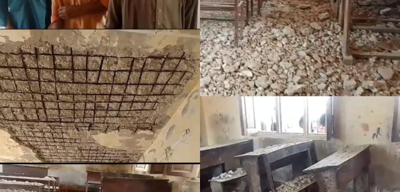 Tangwani (Urdu Times) Tangwani Government Primary School Moulvi Muhammad Salah Malik’s building is in dilapidated condition, the plaster of the roof of the school broke and fell on the students.