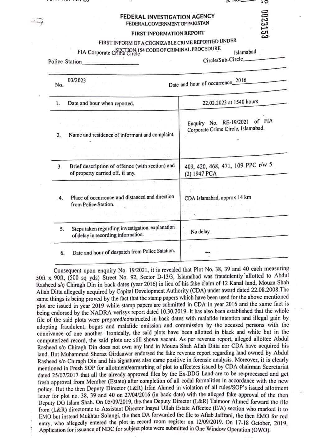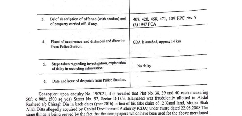 ملزمان نے سی ڈی اے سیکٹر ڈی تیرہ میں واقع متعدد پلاٹس کی جعلی الاٹمنٹس اور جعلی این ڈی سیز جاری کیں