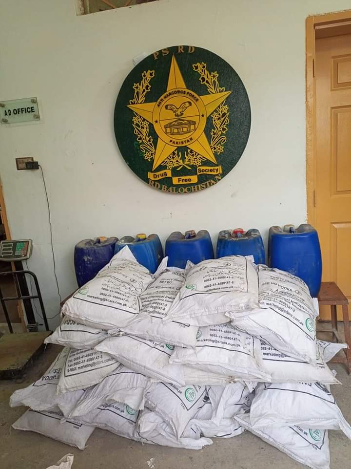 کاروائیوں کے دوران 56 کلوگرام منشیات اور بھاری مقدار میں ممنوعہ کیمیکل برآمد۔