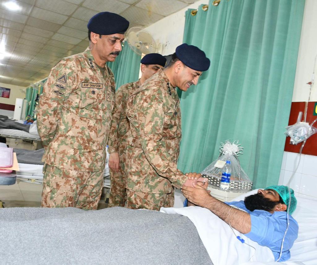 COAS visited CMH Quetta, where he met the injured and families of Mastung incident who are being provided full medical care by Pakistan Army. He also lauded the bravery and resilience of Balochistan Police and Law Enforcement personnel. He assured full cooperation and support to the families of shuhada and assured them that terrorists, their abettors and facilitators will not be spared.