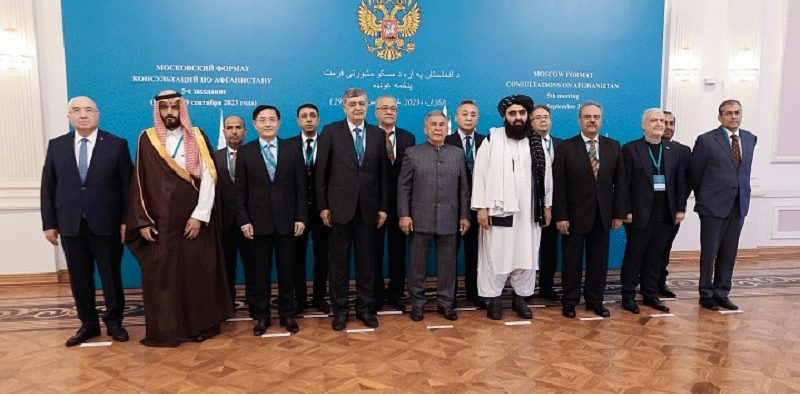 افغانستان سے سیکیورٹی اقدامات میں اضافے کا مطالبہ افغانستان سے متعلق پانچویں ماسکو فارمیٹ کنسلٹیشن کے دوران ہواہے،جس میں چین اور بھارت کے علاوہ پاکستان، ایران، قازقستان، کرغزستان، روس، ترکمانستان اور ازبکستان کے اعلیٰ عہدیداروں شریک تھے۔ شرکا نے افغان حکام پر زور دیا کہ وہ افغان عوام کی فلاح و بہبود، ان کی مزید نقل مکانی روکنے اور مہاجرین کی واپسی کے لیے درکار اقدامات کی ضرورت پر زور دیا۔روسی وزارت خارجہ کی جانب سے جاری بیان میں کہا گیا کہ اجلاس کے شرکا نے افغانستان میں بنیادی طور پر دہشت گرد گروپس بالخصوص داعش کی کارروائیوں کی وجہ سے سیکیورٹی کی گھمبیر ہوتی ہوئی صورت حال پر گہری تشویش کا اظہار کیا۔ شریک ممالک نے افغان حکام پر زور دیا کہ وہ افغانستان میں موجود ہر قسم کے دہشت گرد گروپس ختم کرنے، ان کو روکنے، ملک کو دہشت گردی، عدم استحکام کا گڑھ بننے اور ان عناصر کا علاقائی ریاستوں تک پھیلاؤ روکنے کے لیے مؤثر اقدامات کرے۔ انہوں نے صنعتی منشیات کی پیداوار سمیت مؤثر انسداد منشیات پالیسی جاری رکھنے کی اہمیت پر بھی زور دیا۔