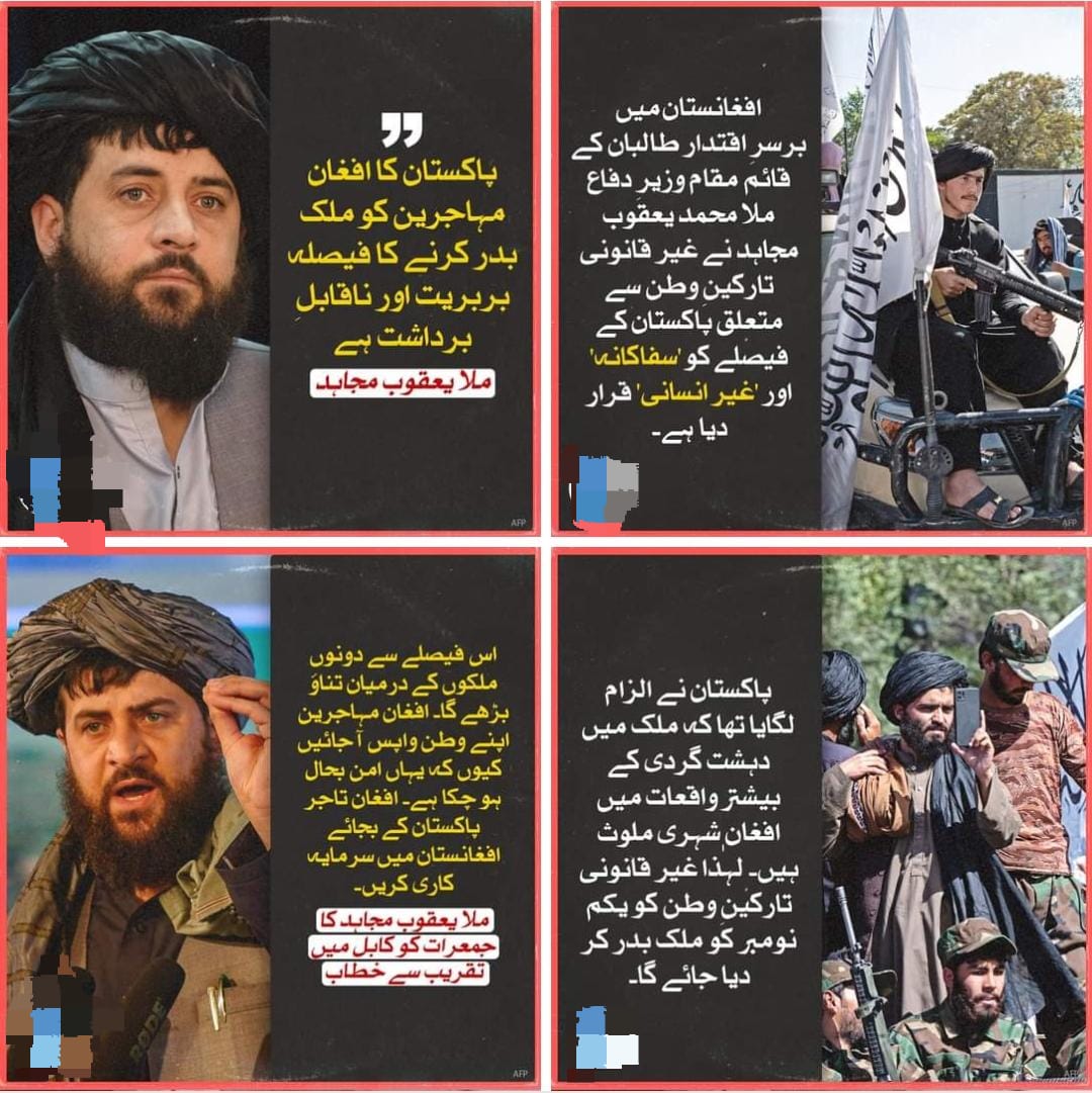 افغانستان میں طالبان حکومت کے قائم مقام وزیرِ دفاع ملا محمد یعقوب مجاہد نے غیر قانونی تارکینِ وطن سے متعلق پاکستان کے فیصلے کو ‘سفاکانہ’ اور ‘غیر انسانی’ قرار دیا ہے۔