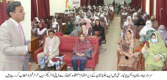 National Accountability Bureau (Baluchistan) organized a seminar regarding anti-corruption awareness campaign at Sardar Bahadur Khan Women University (SBKWU), Quetta. The purpose of the seminar was to disseminate awareness message and hatred against corruption among the students. Deputy Director NAB (B) Mr. Khuram Shahzad and Dr. Gul Butti Dean Management Sciences shared their views before the students of the university. They urged the students to play their role in eradicating corruption. By positive moral values, young people can develop strong culture consistent with Islamic teachings. The need for honesty, integrity and self-accountability in every aspect of contemporary society was emphasized therein. It was asserted that through integrity and adherence to Islamic principles, students have the power to make a positive impact on the world around them. Active participation in community-based activities and promoting transparency, students can contribute building a dynamic society. Dr. Farhat Safdar, Registrar SBK University, Ms. Saleha Zaman Deputy Director NAB and fair gathering of students witness the seminar. A symbolic walk was also organized at the end of the seminar. In which students actively participated.