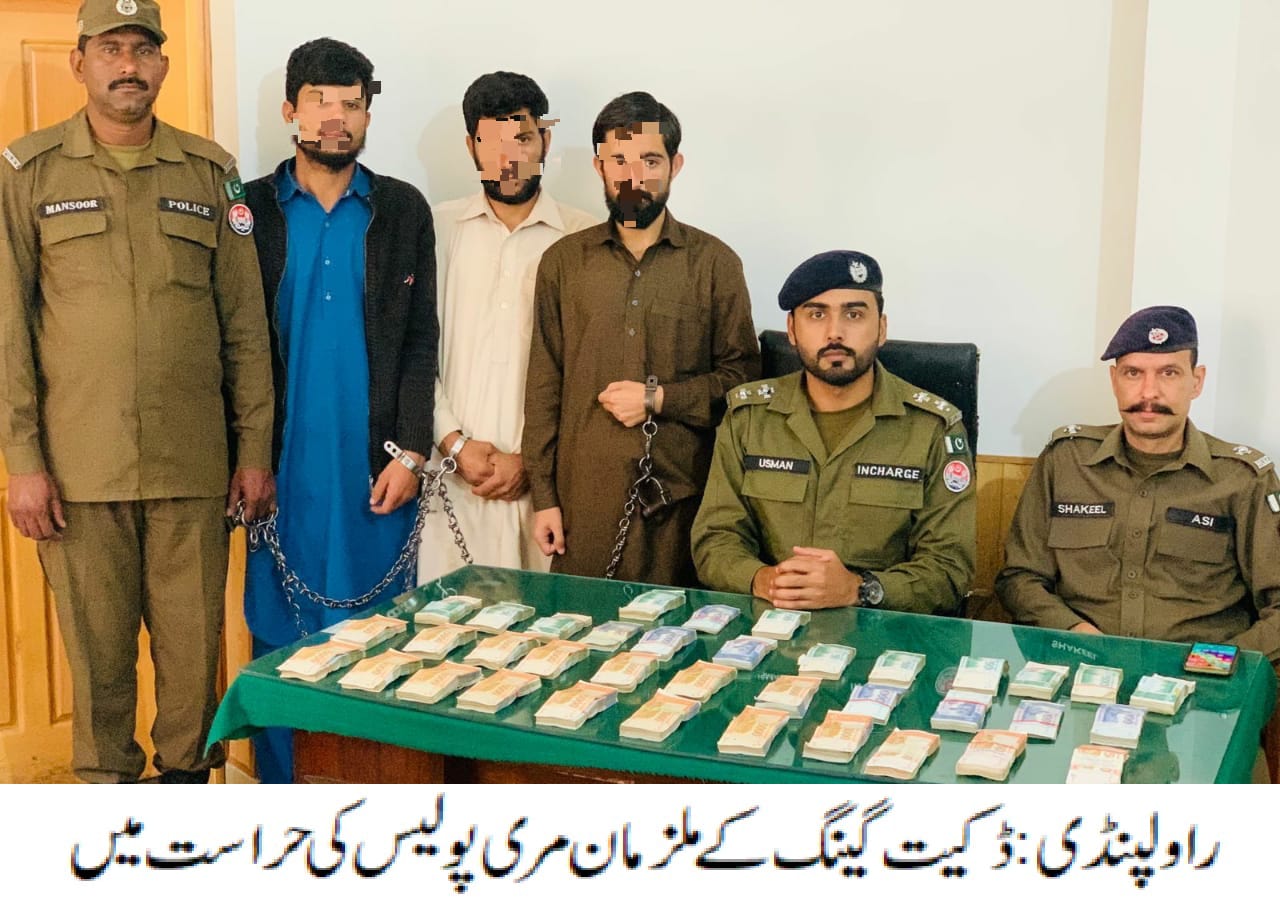 راولپنڈی(اردو ٹائمز) مری پولیس کی موثر کاروائی،ڈکیت گینگ کے 03 ارکان گرفتار