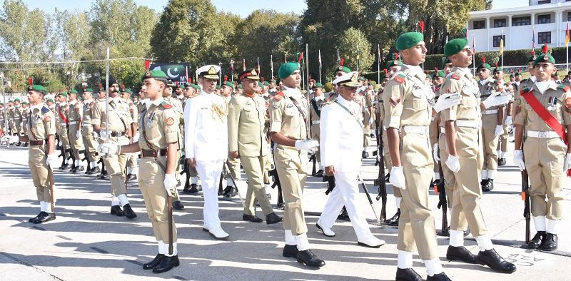 The chief guest reviewed the parade and gave awards to distinguished cadets. The coveted Sword of Honour was awarded to Academy Senior Under Officer Muhammad Abdur Rehman Awan of 148th PMA Long Course. The President’s Gold Medal to Battalion Senior Under Officer Muhammad Hamza Khalid of 148th PMA Long Course. Chairman Joint Chiefs of Staff Committee Overseas Gold Medal to Battalion Senior Under Officer Shreejan Baniya of 148th PMA Long Course from Nepal. Commandant’s Canes were awarded to Course Under Officer Muhammad Najam Azam of 67th Integrated Course and Course Under Officer Fareeha Kainaat Arif of 22nd Lady Cadet Course. Chief of Army Staff Cane to Company Quarter Master Sergeant Frasat Toufique of 35th Technical Graduate Course.