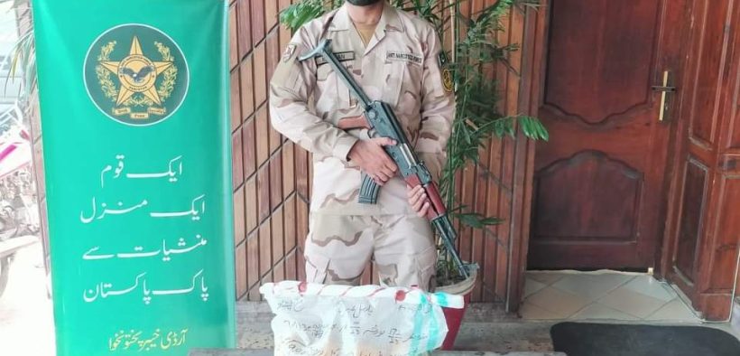 خیبر کے غیر آباد علاقے سے اسمگلنگ کے لئے چھپائی گئی 10 کلو چرس برآمد۔