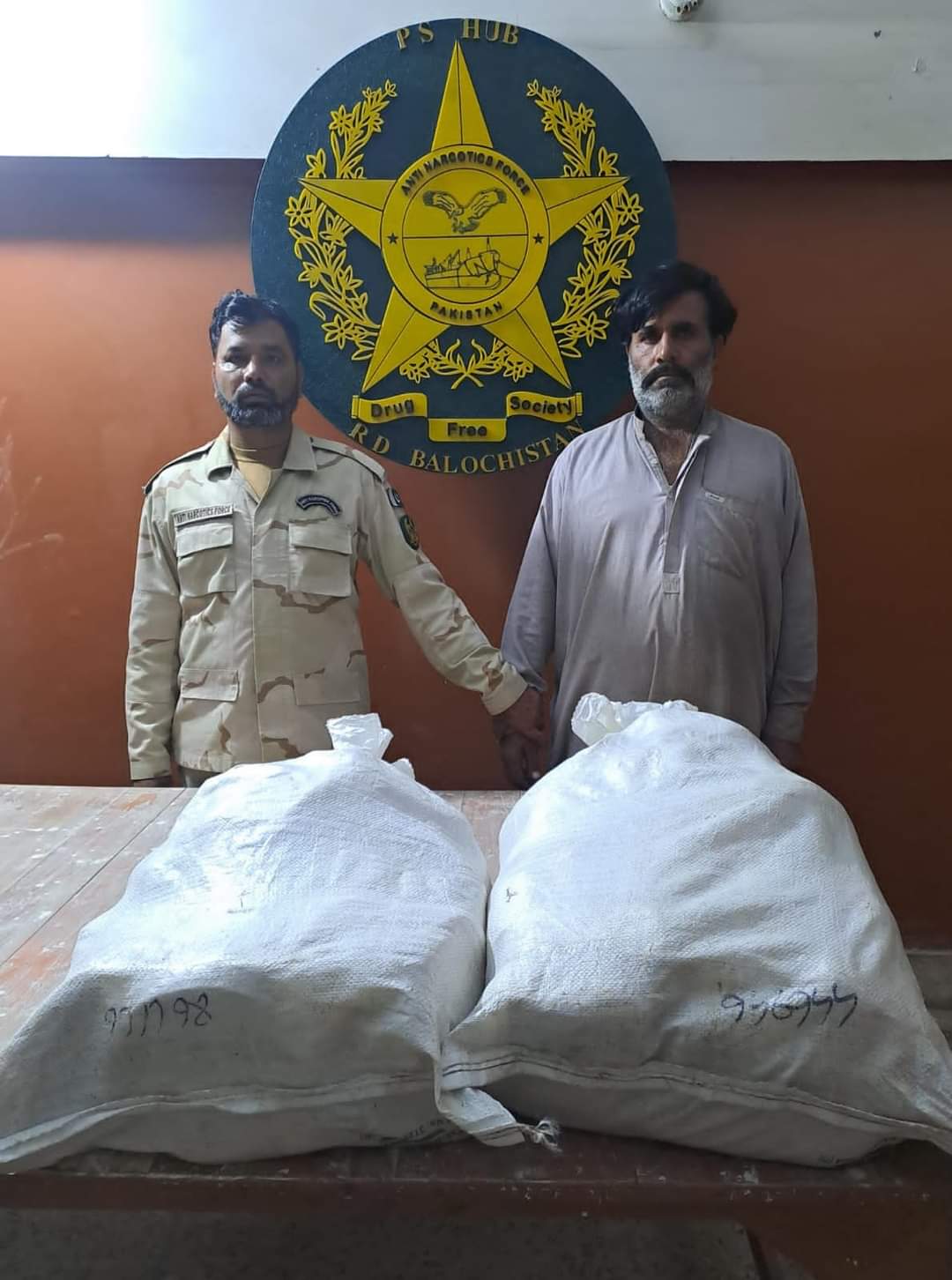 دوسری کاروائی میں آر سی ڈی ہائی وے کراچی پر ٹرک میں چھپائی گئی 57 کلو چرس برآمد۔