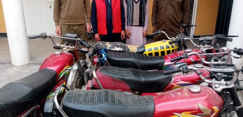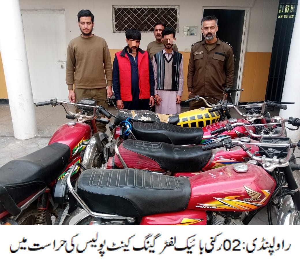 ایس ایچ او تھانہ ٹیکسلا رفیق خان کی اہم کاروائی، سٹریٹ کرائم و ڈکیتی کی وارداتوں میں ملوث عاطف گینگ کا سرغنہ دو ساتھیوں سمیت گرفتار،چھینے گئے 05 موٹر سائیکل، موبائل فون اور وارداتوں میں استعمال ہونے والا اسلحہ برآمد۔تفصیلات کے مطابق ٹیکسلا پولیس نے کاروائی کرتے ہوئے سٹریٹ کرائم وڈکیتی کی وارداتوں میں ملوث عاطف گینگ کے سرغنہ کو دو ساتھیوں سمیت گرفتار کرلیا، ملزمان کی شناخت عاطف، عظمت اور شیراز کے ناموں سے ہوئی،ملزمان سے چھینے گئے 05 موٹر سائیکل، موبائل فون اور وارداتوں میں استعمال ہونے والا اسلحہ برآمد ہوا، متحرک و مطلوب گینگ کی گرفتاری پر ایس پی پوٹھوہار محمد وقاص خان نے ایس ایچ او ٹیکسلا اور ٹیم کو شاباش دیتے ہوئے کہاکہ شہریوں کی جان ومال کی حفاظت اولین ترجیح ہے،منظم اور متحرک گینگز کے خلاف کاروائیوں میں تیزی لائی جارہی ہے۔