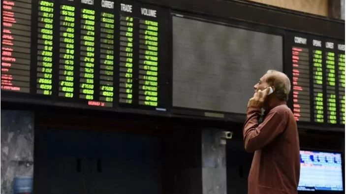 پاکستان اسٹاک ایکسچینج میں آج بھی زبردست تیزی رہی، کاروبار کے دوران 100 انڈیکس پہلی بار 56 ہزار کی سطح عبور کرگیا۔ کاروباری ہفتے کے آغاز سے ہی پاکستان اسٹاک ایکسچینج میں کاروبار کا مثبت رجحان دیکھا گیا اور ایک موقع پر 100 انڈیکس 1192 پوائنٹس اضافے سے 56 ہزار 583 کی سطح پر پہنچ گیا۔ کاروبار کے اختتام پر 100 انڈیکس 11 ہزار 32 پوائنٹس کے اضافے سے 56 ہزار 523 پر بند ہوا۔ یاد رہے کہ گزشتہ کاروباری ہفتے کے آخری روز بھی پاکستان اسٹاک ایکسچینج 1129 پوائنٹس اضافے سے 55 ہزار 391 پر بند ہوا تھا۔
