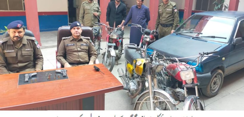 راولپنڈی( )ایس ایچ او تھانہ بنی ارشد محمود کی ہمراہ پولیس ٹیم اہم کارروائی، موٹرسائیکل و کار لفٹر صنم گینگ کا سرغنہ ساتھی سمیت گرفتار،05 مسروقہ موٹر سائیکل اور ایک مہران کار برآمد۔تفصیلات کے مطابق بنی پولیس نے کاروائی کرتے ہوئے موٹرسائیکل وکارلفٹر صنم گینگ کے سرغنہ کو ساتھی سمیت گرفتار کر لیا،ملزمان میں گینگ کا سرغنہ محمد صنم اور جواد شامل ہیں، ملزمان سے05 مسروقہ موٹر سائیکل اورایک مہران کار برآمدہوئی،ملزمان شہر کے مختلف علاقوں میں موٹر سائیکل و کار چوری میں ملوث ہیں، ملزمان سے برآمد شدہ موٹر سائیکل اور کار قانونی کارروائی کے بعد اصل مالکان کے حوالے کئے جائیں گے، متحرک کار و بائیک لفٹر گینگ کی گرفتاری اور برآمدگی پر ایس پی راول فیصل سلیم نے ایس ایچ او بنی و ٹیم کو شاباش دیتے ہوئے کہا کہ منظم و متحرک گینگز کے خلاف گھیرا تنگ کیا جا رہا ہے۔