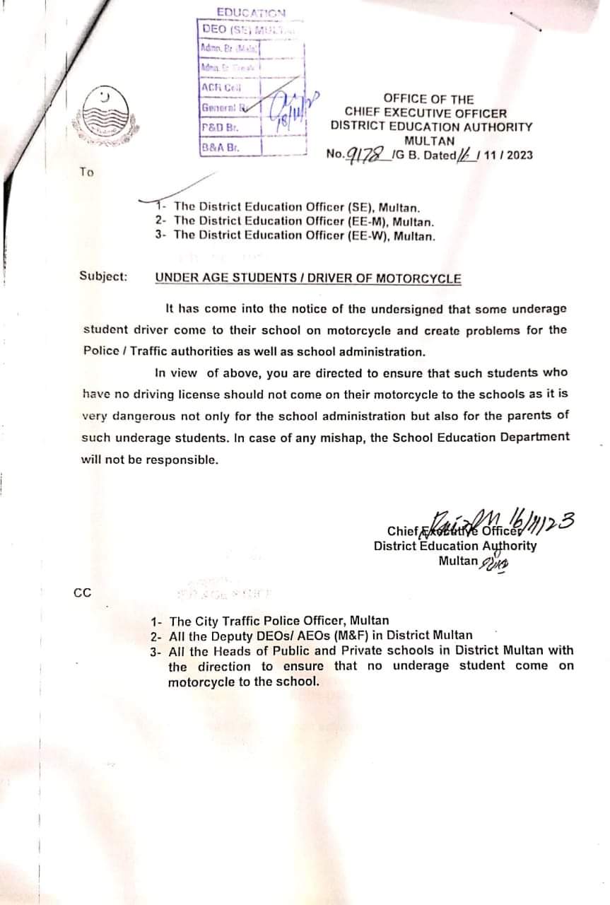 پاکستان تازہ ترین اسلام آباد (اردو ٹائمز) حکومت کی طرف سے ایسے طلباء کو سکول میں موٹر سائیکل لانے پر پابندی admin 2023-11-20 Share اسلام آباد تمام کلاس انچارج صاحبان اپنے طلباء کو ہدایت جاری کریں کہ کوئی طالب علم سکول میں موٹر سائیکل لے کر نہ جائیں. حکومت کی طرف سے ایسے طلباء کو سکول میں موٹر سائیکل لانے پر پابندی عائد کر دی گئی جن کے پاس لائسنس نہیں ہے.