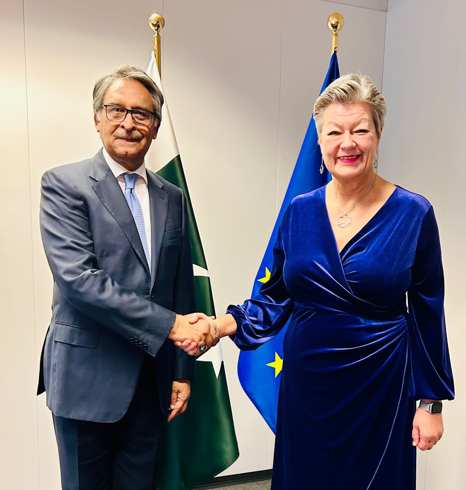 FM @JalilJilani held a meeting with EU Commissioner Home Affairs @YlvaJohansson in Brussels. They discussed developments in context of the Migration and Mobility Dialogue and agreed to strengthen cooperation between 🇵🇰 🇪🇺 for exploring legal pathways for migration.