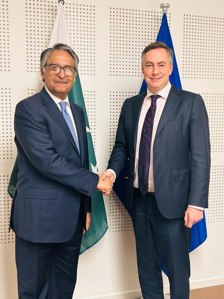 FM@JalilJilani held a meeting with David McAllister, Chair of the European Parliament committee on Foreign Affairs in Brussles today. They exchanged views on latest regional and global developments and agreed to enhance parliamentary engagement and dialogue for deepening of relations between Pakistan and the EU.